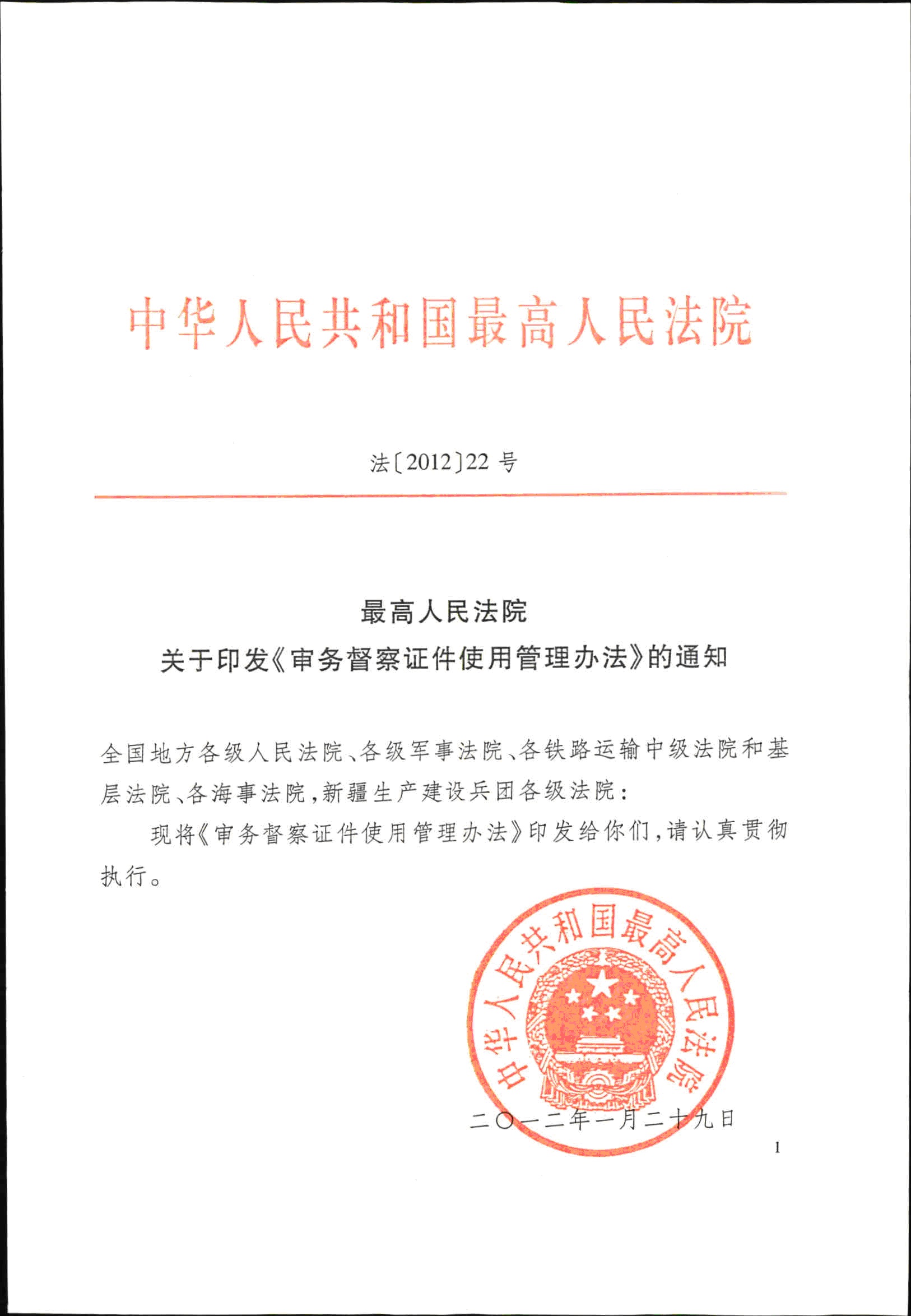 最高人民法院关于印发《审务督察证件使用管理办法》的通知