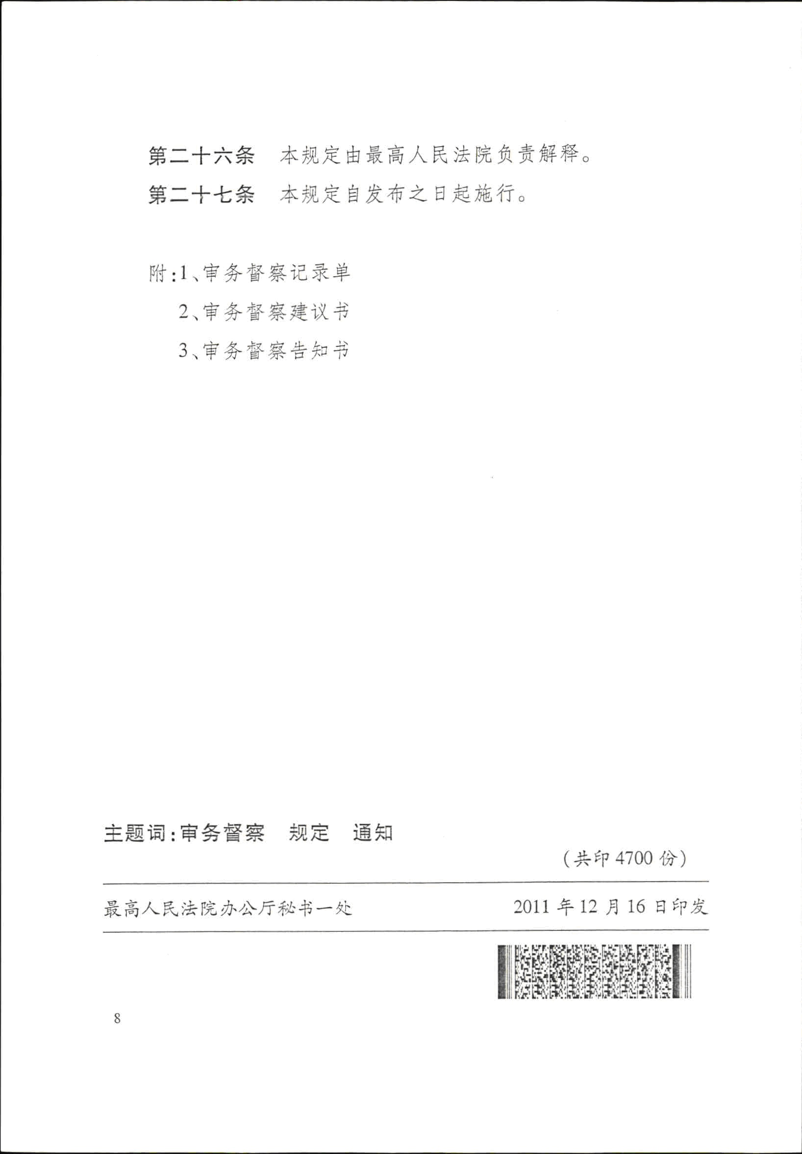 最高人民法院关于印发《人民法院审务督察工作暂行规定》的通知
