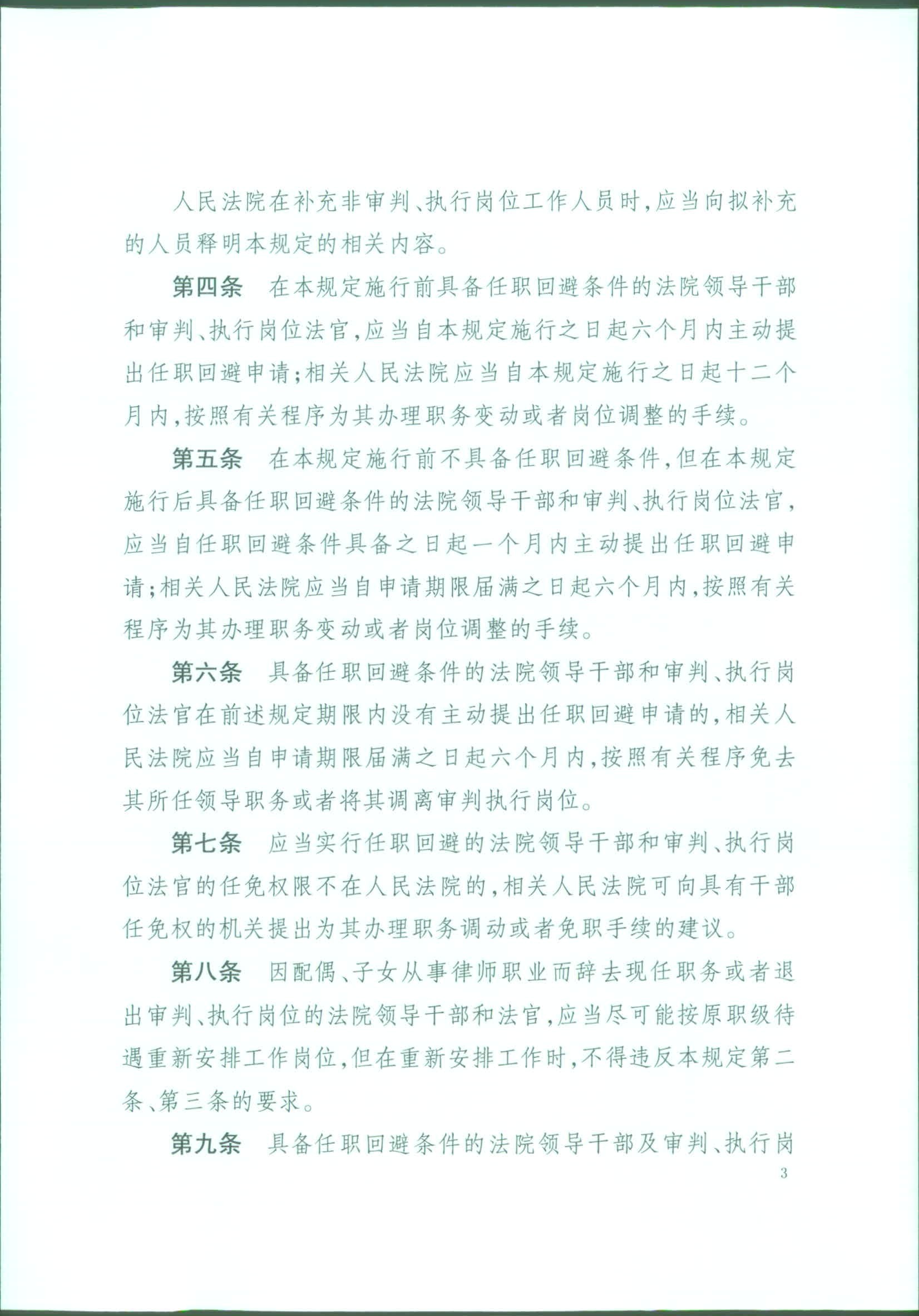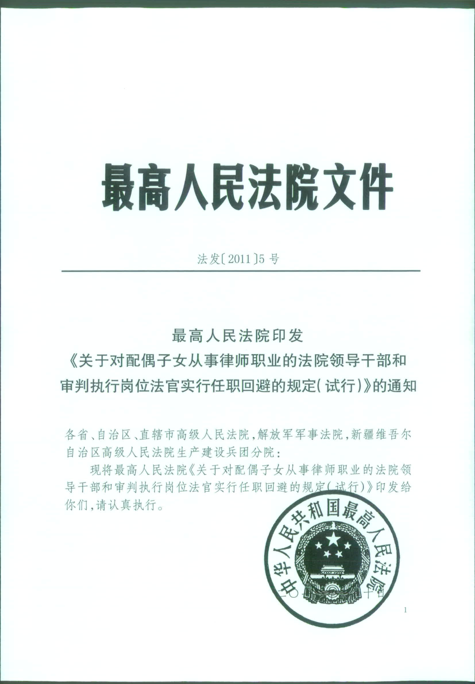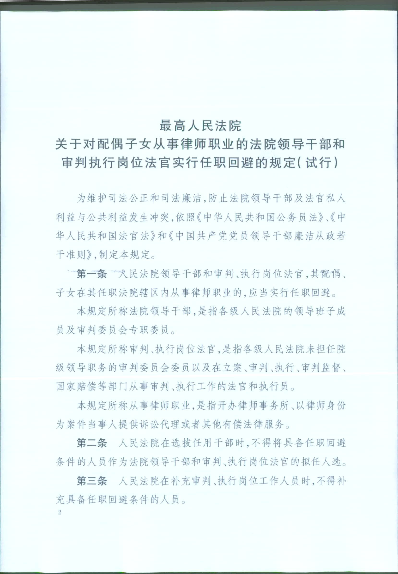 最高人民法院印发《关于对配偶子女从事律师职业的法院领导干部和审判执行岗位法官实行任职回避的规定(试行)》的通知